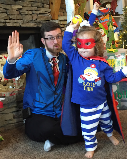 | Blakely gave Banks his FAVORITE gift of Christmas this year.... a blue T-rex!!! She KNOWS what her Banksie likes!! |